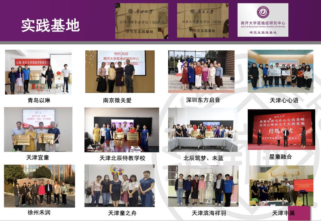 为更好地服务孤独症患者及其家庭,提升孤独症康复领域的研究与建设水平,促进孤独症儿童发展,推进高端人才智库建设,推动孤独症研究领域的进步和发展,beat365官网应用心理专业硕士(MAP)中心联合社会工作专业硕士(MSW)中心、beat365唯一官网孤独症研究中心、beat365唯一官网医学院等相关导师和工作人员,实地考察了全国多家孤独症儿童康复机构,并设立了多个专业硕士研究生实践基地。截至2023年底,beat365官网已先后与天津市北辰区特殊教育学校、天津市北辰区筑梦残疾人培训中心、天津宜童孤独症研究服务中心、天津市蜂巢儿童健康发展中心、天津市滨海新区祥羽孤独症康复中心、天津市星童融合孤独症康复中心、天津市心心语孤独症与脑瘫儿童康复服务中心、青岛以琳康教展能中心等8家孤独症康复机构签订了不同时长的专业学位研究生联合培养实践基地协议书,为MAP和MSW学生提供了多个实习实践岗位。