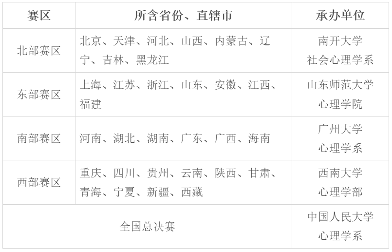请各个院校组织学生积极报名,本科生与研究生均可报名参赛,鼓励跨年级、跨专业组队。可通过赛事公众号菜单直接报名,后期组委会将会把名单发送至各个院校负责老师。赛事组委会将联系各个院校推荐负责老师,也欢迎各个院校心理学相关专业的负责老师自荐,联系方式见文末。