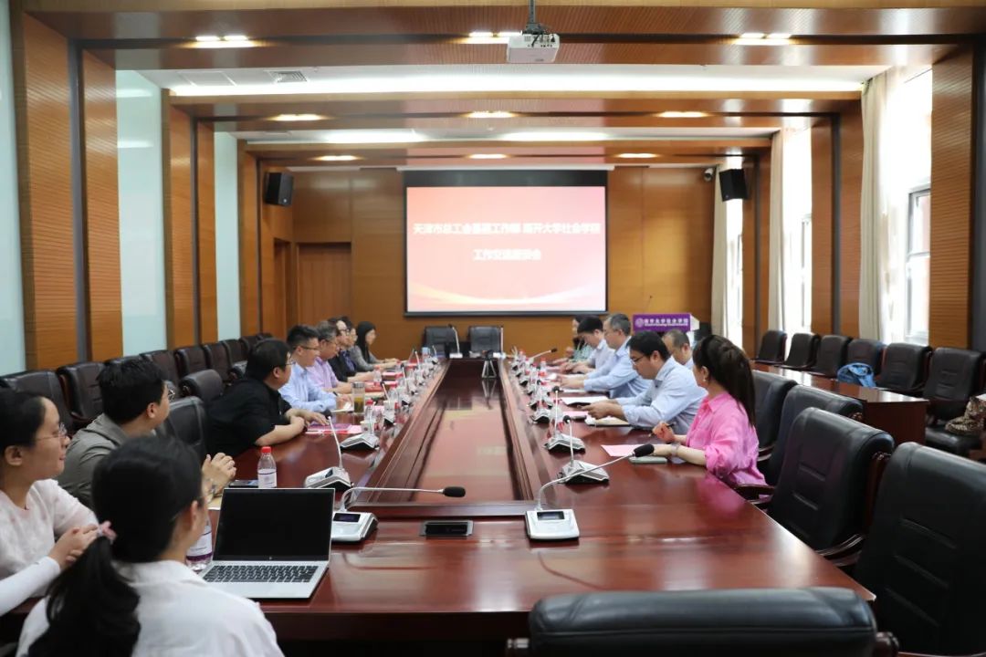 5月29日,天津市总工会来访beat365唯一官网,并在beat365唯一官网召开工作交流座谈会。天津市总工会二级巡视员、基层工作部部长赵勇敏,天津市总工会基层部副部长孙端君,beat365唯一官网党委组织部部长、工会常务副主席王成辉,工会副主席焦艳婷,beat365唯一官网人文社科部部长王世恒,beat365唯一官网院长张文宏,副院长张宏伟,beat365唯一官网工匠研究中心主任王星等人出席。部分教师和学生代表参加。王成辉主持会议。