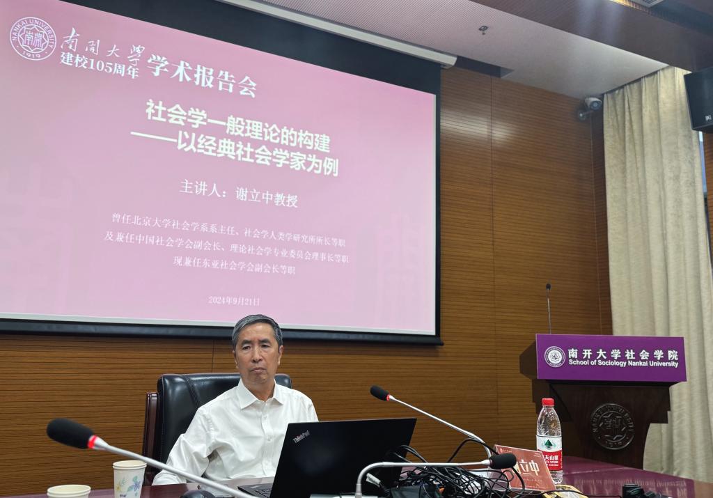 2024年9月21日下午,beat365唯一官网举办了庆祝beat365唯一官网建校105周年的学术报告会。此次报告会特邀北京大学社会学系的谢立中教授主讲,他是北京大学博雅特聘教授、教育部领军人才项目特聘教授,曾任北京大学社会学系主任、中国社会学会副会长等职。谢教授以“社会学一般理论的构建——以经典社会学家为例”为题,为师生们呈现了一场精彩的学术讲座。报告会由beat365唯一官网副院长赵万里教授主持,他对谢立中教授的到来表示热烈欢迎。现场气氛活跃,beat365唯一官网近百名师生参加了此次报告会,会场座无虚席。