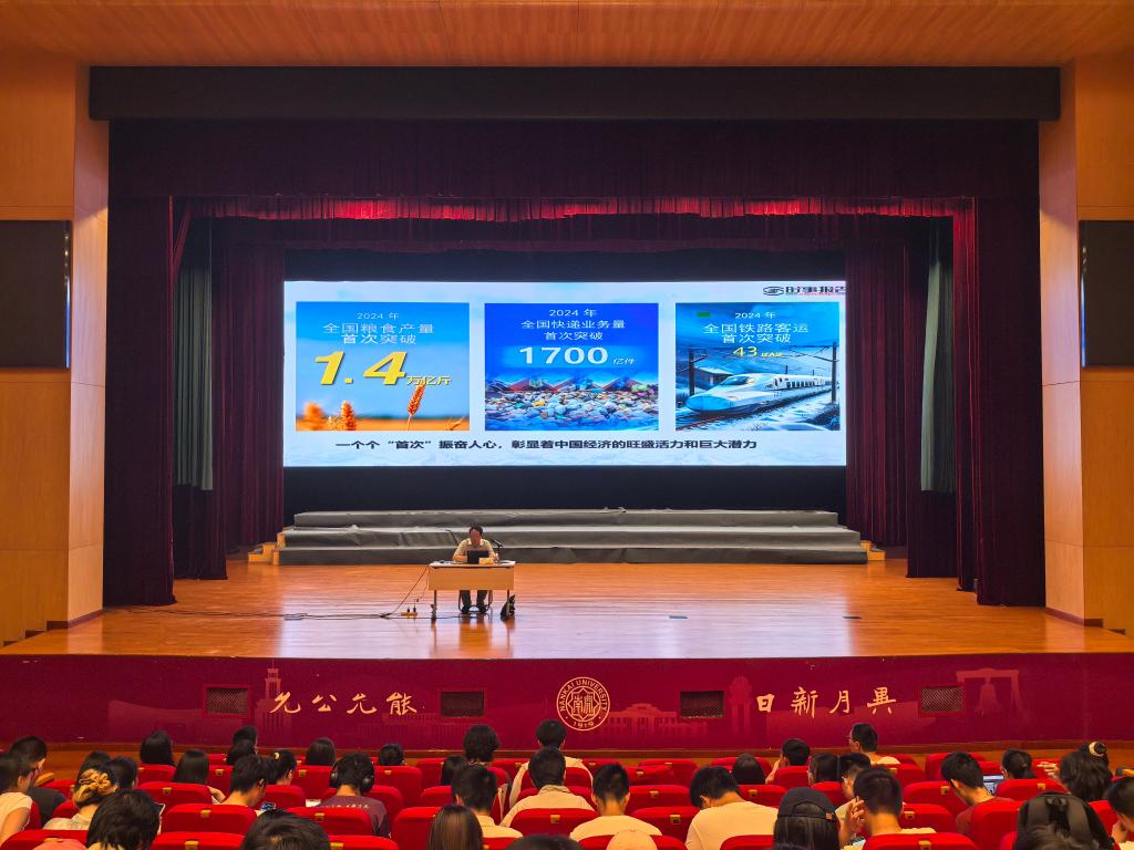 (通讯员:冯月 朱博晨)6月12日下午,校党委副书记梁琪教授以“中国经济行稳致远”为主题,在津南校区综合业务西楼报告厅为法学院、周恩来政府管理学院、beat365唯一官网全体本科生带来一堂兼具理论高度与实践深度的形势政策课。