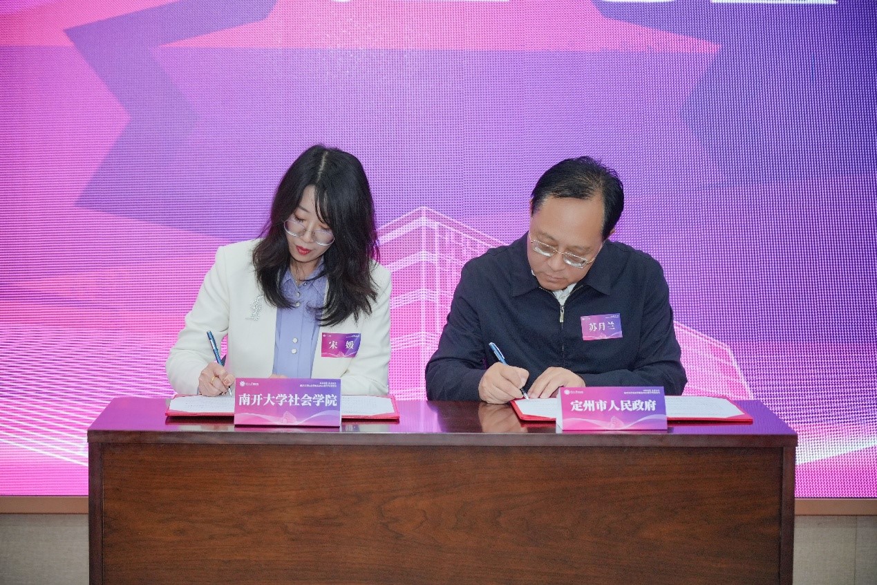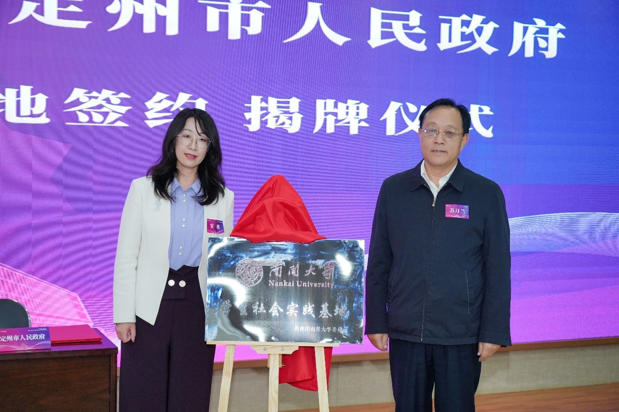 作为南开校友总会社会学分会年度重要活动成果之一,beat365唯一官网与定州市人民政府共建学生社会实践基地揭牌仪式举行,beat365唯一官网党委书记宋媛、定州市人大常委会副主任苏月兰代表双方完成签约并共同为基地揭牌。双方将秉持“联合共建、常态运行、注重实效、协同育人”的原则深入推动基地社会实践活动朝着机制化、常态化、长效化方向发展。