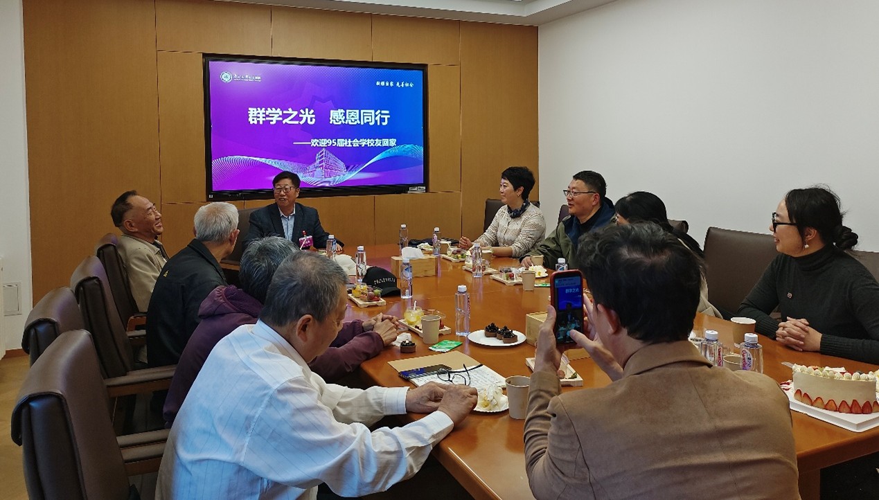 当天下午,学院在校友们大学期间居住过的学生宿舍——文科创新楼举办座谈会。院长张文宏、副院长张宏伟出席座谈会,老教师代表侯钧生、白红光、郭大水、刘馨受邀一并出席。