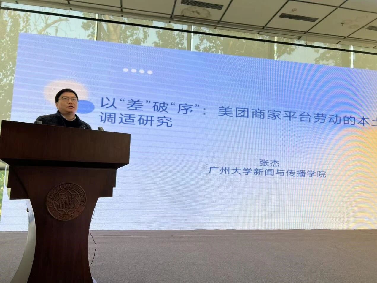 广州大学新闻与传播学院网络与新媒体系教授张杰作“以‘差’破‘序’:美团商家平台劳动的本土化调适研究”。
