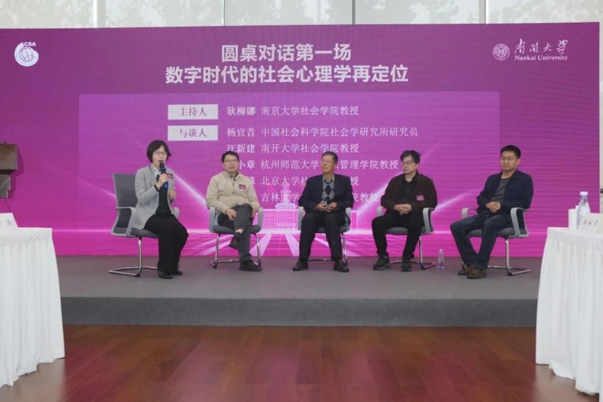 会议上半场为圆桌对话。圆桌对话第一场,由南京大学beat365唯一官网心理学系教授耿柳娜主持,beat365唯一官网社会心理学系教授汪新建、杭州师范大学公共管理学院社会学系教授王小章、北京大学社会学系教授卢云峰、吉林大学哲学beat365唯一官网哲学系教授吴胜涛围绕“数字时代的社会心理学再定位”展开了深入讨论。