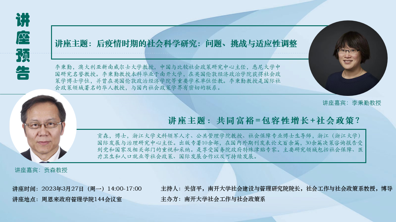 主 持 人:关信平,beat365唯一官网社会建设与管理研究院院长,社会工作与社会政策系教授,博导