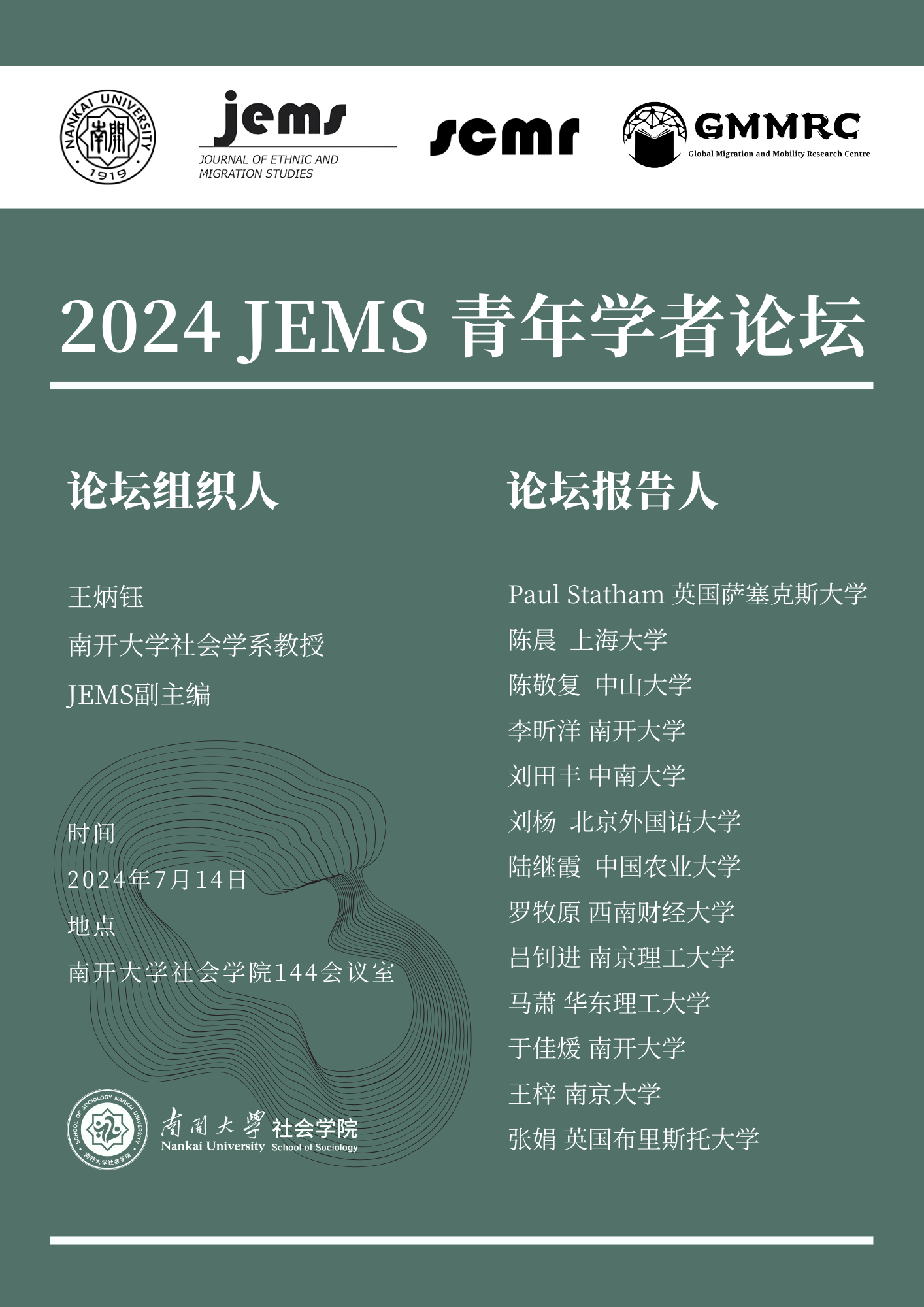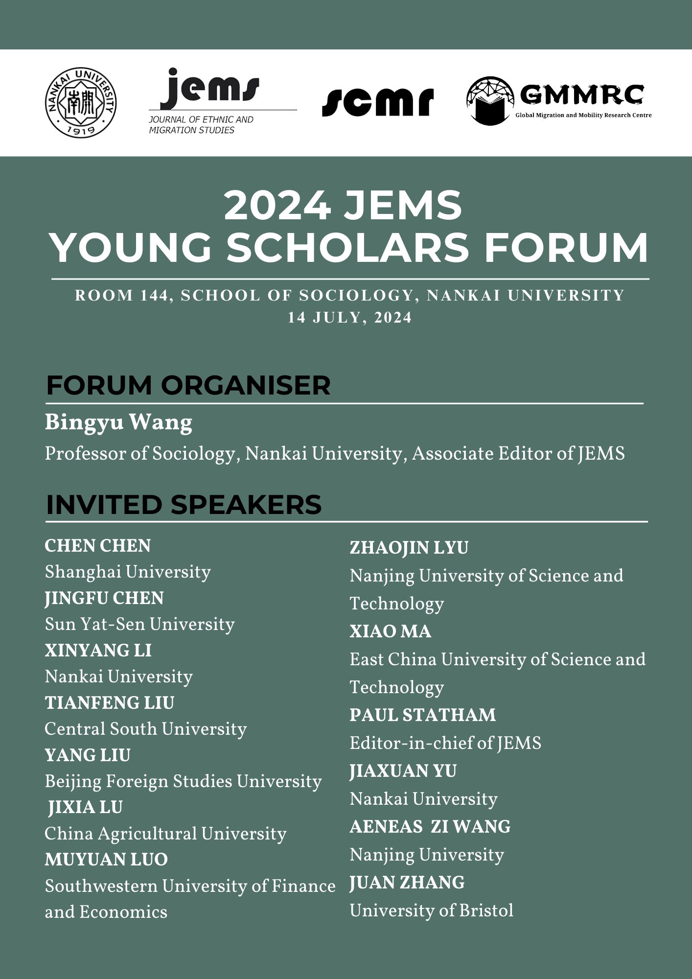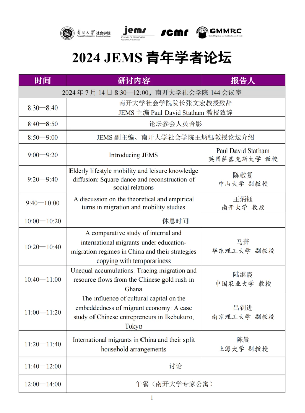 beat365唯一官网将于2024年7月14日举办“2024JEMS青年学者论坛”。该论坛以beat365唯一官网全球移民与流动研究中心(GMMRC)以及移民研究国际权威期刊Journal of Ethnic and Migration Studies(JEMS)为平台,将聚焦移民与流动等相关研究领域的前沿成果和最新发展趋势,旨在更有效地链接优质海内外学术资源、为学者们提供更多交流和合作的机会。