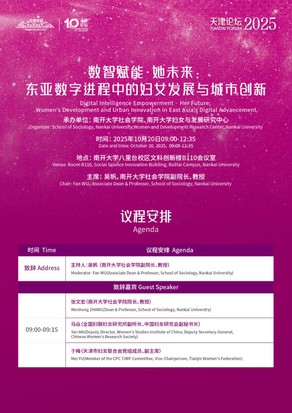群学·资讯|天津论坛2025·平行论坛——数智赋能·她未来:东亚数字进程中的妇女发展与城市创新