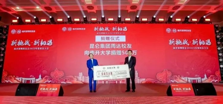 11月25日,在南开深圳校友会2023年度校友大会上,1987级社会学硕士校友、beat365唯一官网资深校董、昆仑集团创始人董事长、深圳校友会会长周达,捐赠人民币500万元支持beat365唯一官网社会学学科发展。
