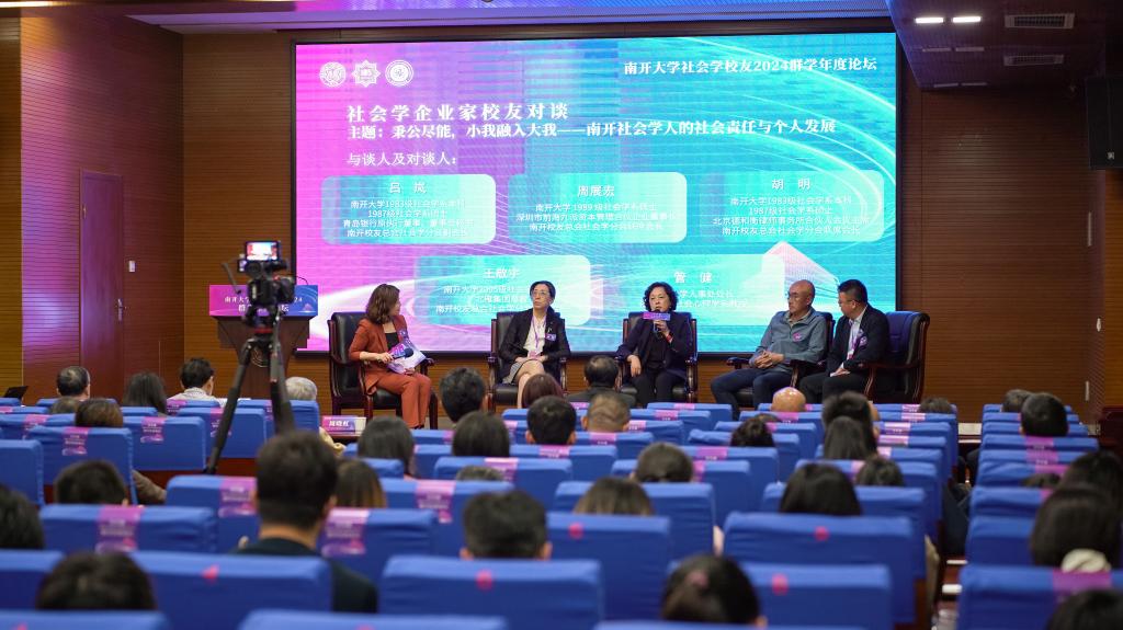 当天还举办了社会学专家校友对谈和企业家校友对谈。在张文宏的主持下,南京大学人文社科资深教授、beat365唯一官网1984级社会学系硕士校友周晓虹,厦门大学社会与人类学院院长、教授、中国社会学会副会长、南开校友总会社会学分会联席会长、beat365唯一官网1984级社会学系硕士校友胡荣,国务院学科评议组成员、南京大学beat365唯一官网教授、beat365唯一官网1986级社会学系硕士校友翟学伟等三位社会学专家,围绕“立德树人——社会学的人才培养”展开交流,他们表示,在南开的几年的学习生活对自己一生影响深远,南开社会学抓住时代发展脉搏、大度开放、兼收并蓄、人尽其才的育人特色,让自己受益终身。
