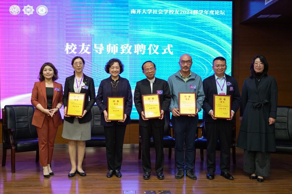 对谈结束后,周晓虹、胡荣、翟学伟三位专家校友和周达、吕岚、周展宏、胡明、王敬宇五位企业家校友受聘为学院校友导师。张文宏、宋媛、管健分别向他们致送聘书。