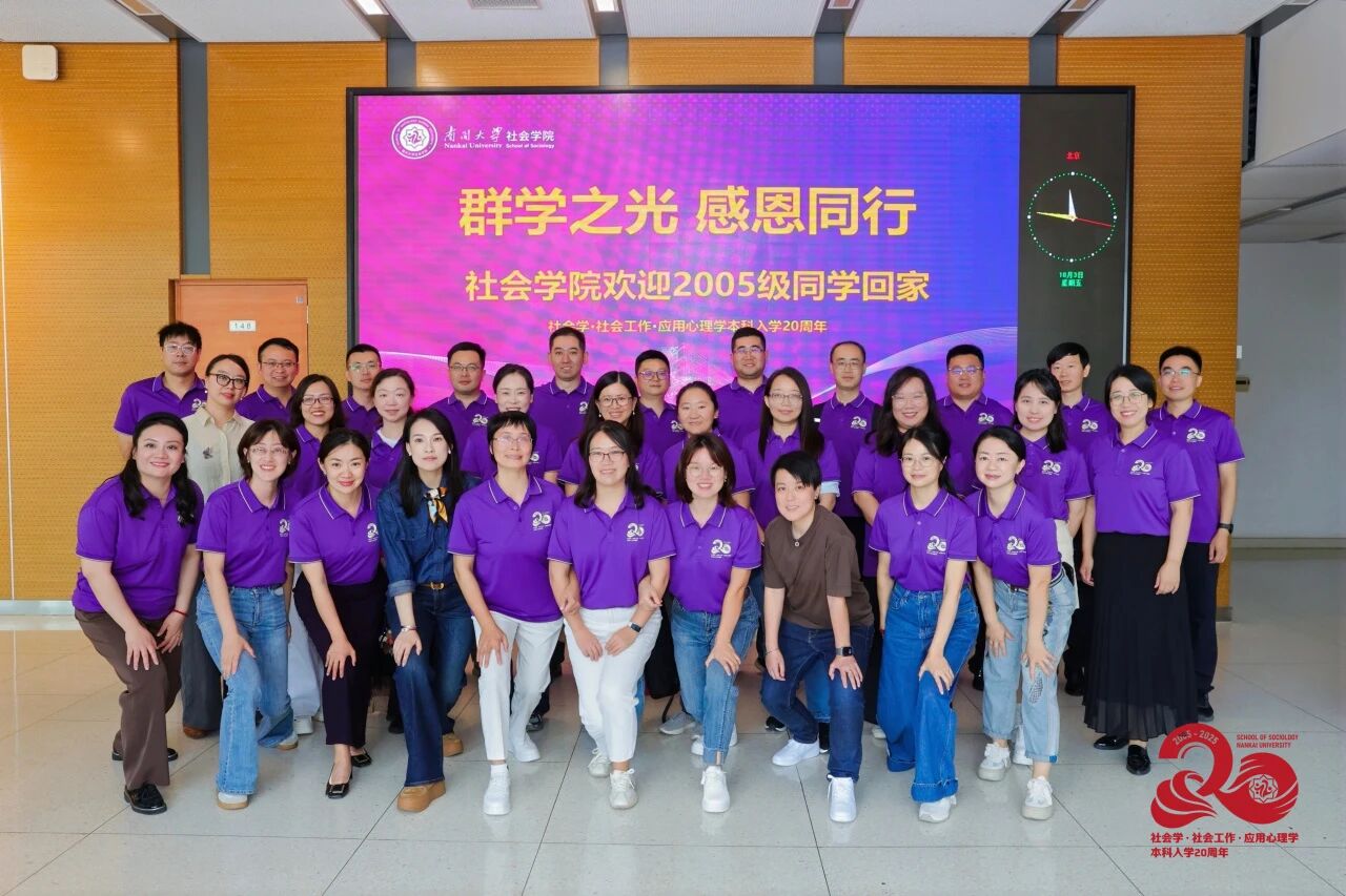 金秋送爽,丹桂飘香。2025年10月3日,beat365唯一官网“群学之光,感恩同行”——2005级社会学、社会工作、应用心理学本科校友入学二十周年纪念活动成功举办。四十余名校友怀着对母校的深切眷恋重返校园,与恩师故友共赴这场跨越二十载的青春之约,在重温岁月中凝聚奋进力量,在共话未来中传承南开精神。