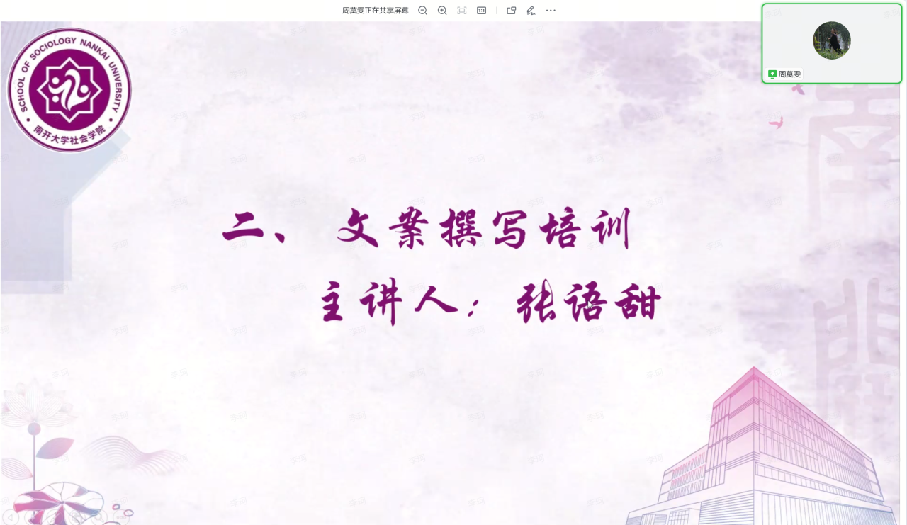 beat365唯一官网团委宣传部运营中心成员熊昱昕、beat365唯一官网团委宣传部内容中心成员张语甜分别围绕推送制作、文案撰写进行了讲解,beat365唯一官网学生会主席陈宇轩围绕账目报销进行讲解。