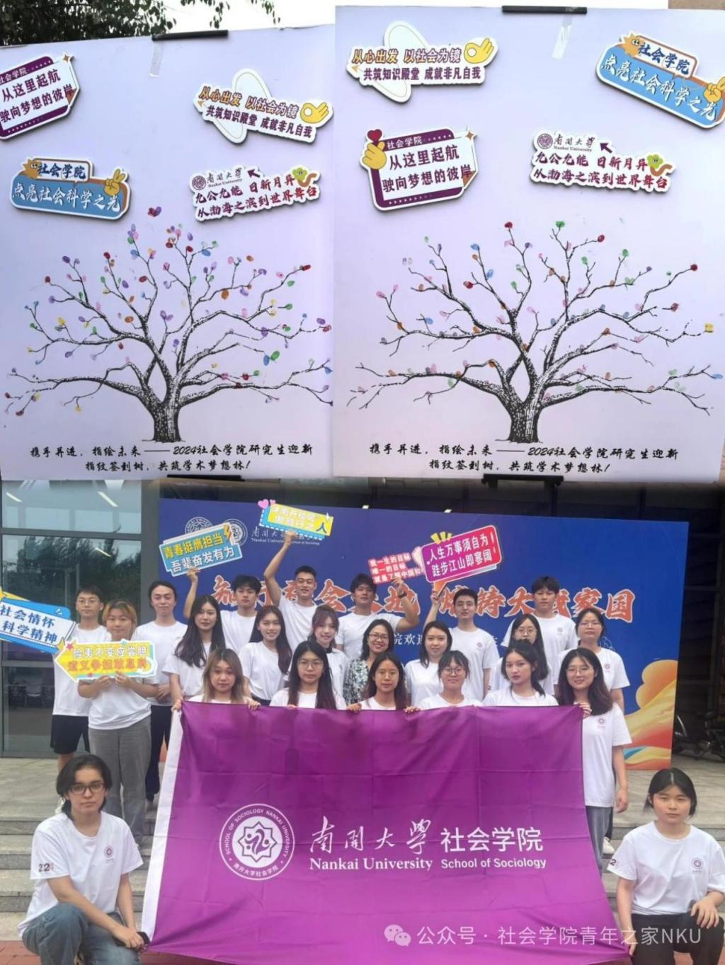 “携手并进,指绘未来”,每一枚色彩斑斓的指印,都是新生们对未来学术生涯的郑重承诺与美好期许,它们汇聚成树,寓意着智慧与梦想的根深叶茂。未来,他们将在南开这片学术的沃土中,用自己的双手与智慧绘制出一幅幅绚烂多彩的未来图景,共筑学术梦想之林,绽放最为璀璨夺目的学术之花。而入学之际的这两棵“指纹树”,也将成为他们学术生涯最美好而难忘的开端。