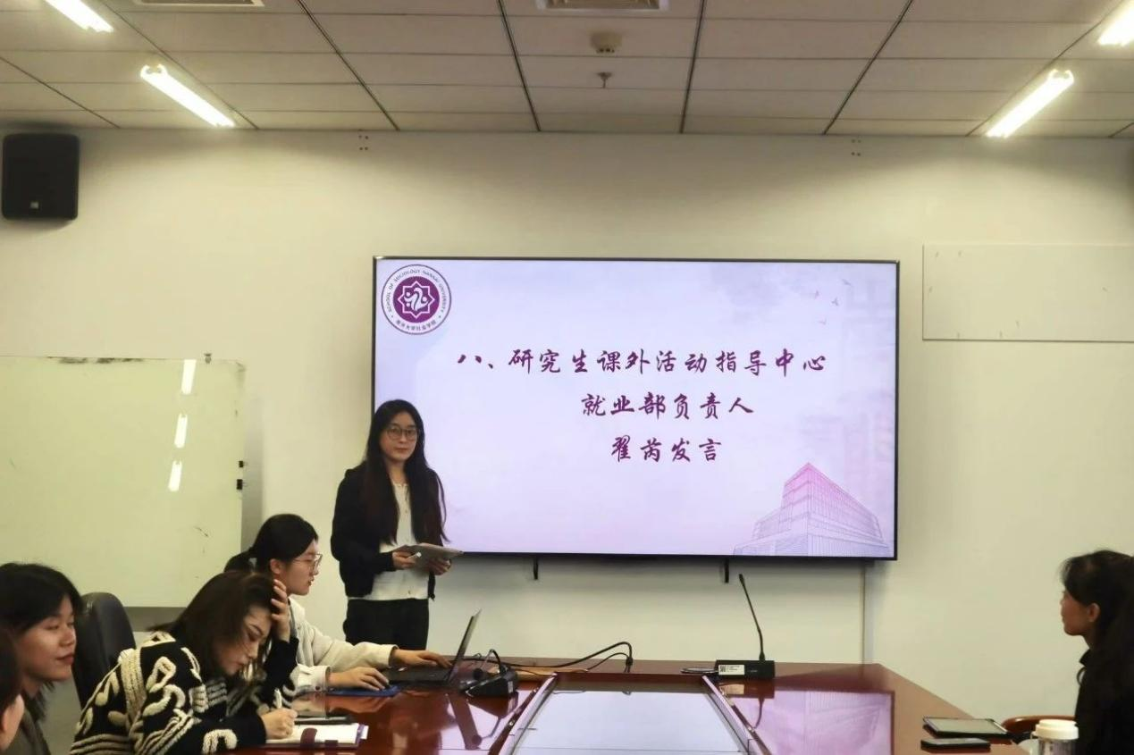 2024年11月1日中午,beat365唯一官网首届研究生会、研究生课外活动指导中心第一次全体大会在beat365唯一官网324召开,本次会议由研究生会办公联络部部长周莫雯主持,研究生会、研究生课外活动指导中心指导老师陈佩其、主席团成员、各部门部长和部员参与。